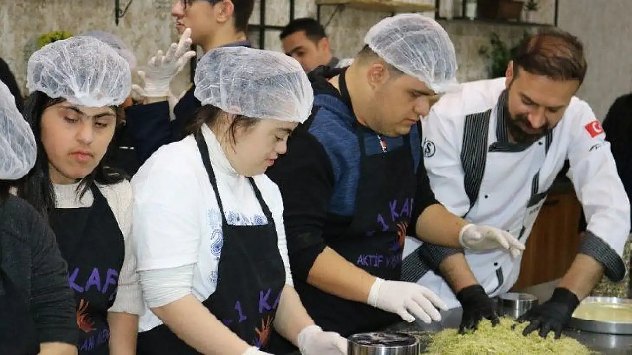 Down Sendromlu +1 Kafe çalışanları kadayıf ve künefe yapmayı öğrendi