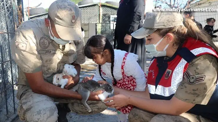 Jandarma Komutanlığı görevlileri, Down sendromlu çocukları hayvanlar ile buluşturarak, ilgi gösterdiler.
