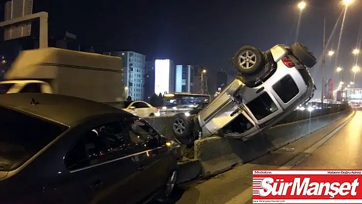 E-5 karayolu Kadıköy mevkisinde sürücüsünün bilinmeyen bir nedenden hakimiyetini kaybettiği lüks cip önce refüjde çarptı, ardından da adeta amuda kalktı. Cip sürücüsü kazadan yaralı kurtulurken kazayı görenler gözlerine inanamadı.