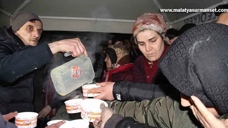 Kahramanmaraş merkezli depremlerden etkilenen Malatya'da bulunan depremzede vatandaşlar için Elazığ Belediyesi ekipleri sıcak çorba ikramında bulundu.