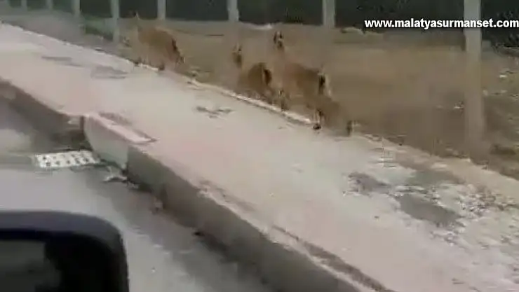 Elazığ’da merkeze inen dağ keçileri cep telefonu ile görüntülendi.