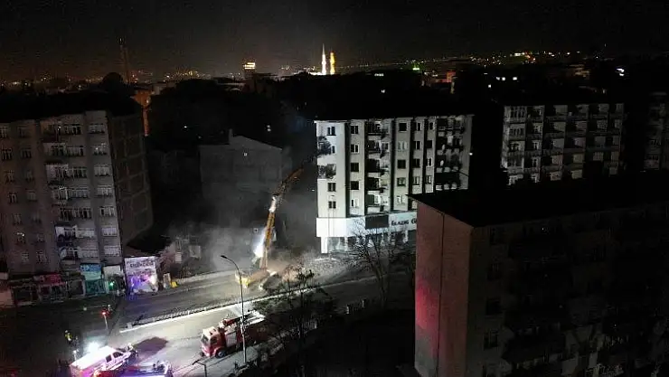 Elazığ'daki 6.8'lik depremin ardından çökme riski bulunan bir binanın dev vinç ve kepçelerle yıkımına başlandı.