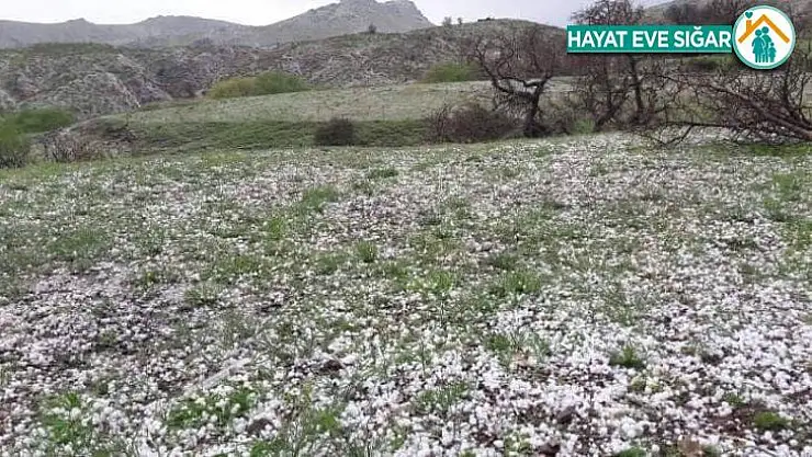 Elazığ'ın Alacakaya ilçesinde ve bazı köylerde misket büyüklüğünde dolu yağdı.