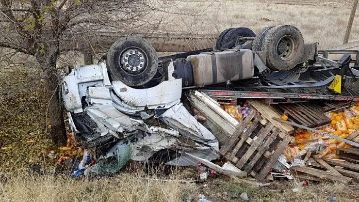 Elazığ'da direksiyon hakimiyetini kaybeden tır sürücüsü takla attı 1 yaralı.