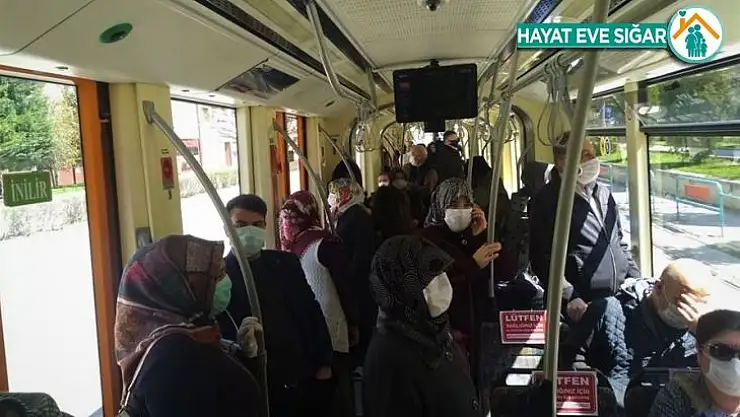Eskişehirliler tarafından kullanılan toplu taşıma araçlarının başında gelen tramvaylar, korona virüs (Covid-19) ile mücadele sürecinde olunmasına rağmen tıklım tıklım doluluğu ile adeta pes dedirtti.