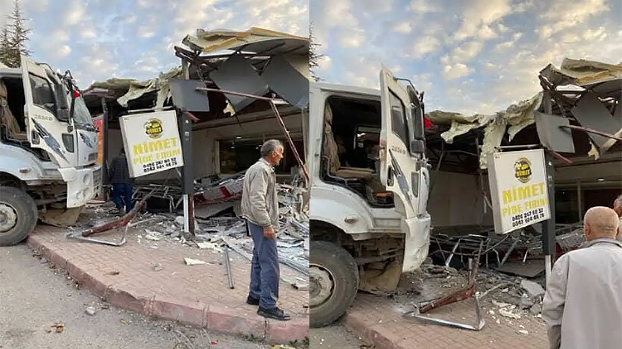 Elazığ'da freni patlayan kamyon, ekmek fırınına daldı. Fırında kimsenin olmaması büyük bir faciayı önledi.