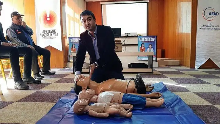 Adıyaman İl Afet ve Acil Durum Müdürlüğü (AFAD) salonunda İlk Yardım Eğitimcisi Metin Tırtık ve Kamber Özkara tarafından ilk yardım eğitimi verildi.
