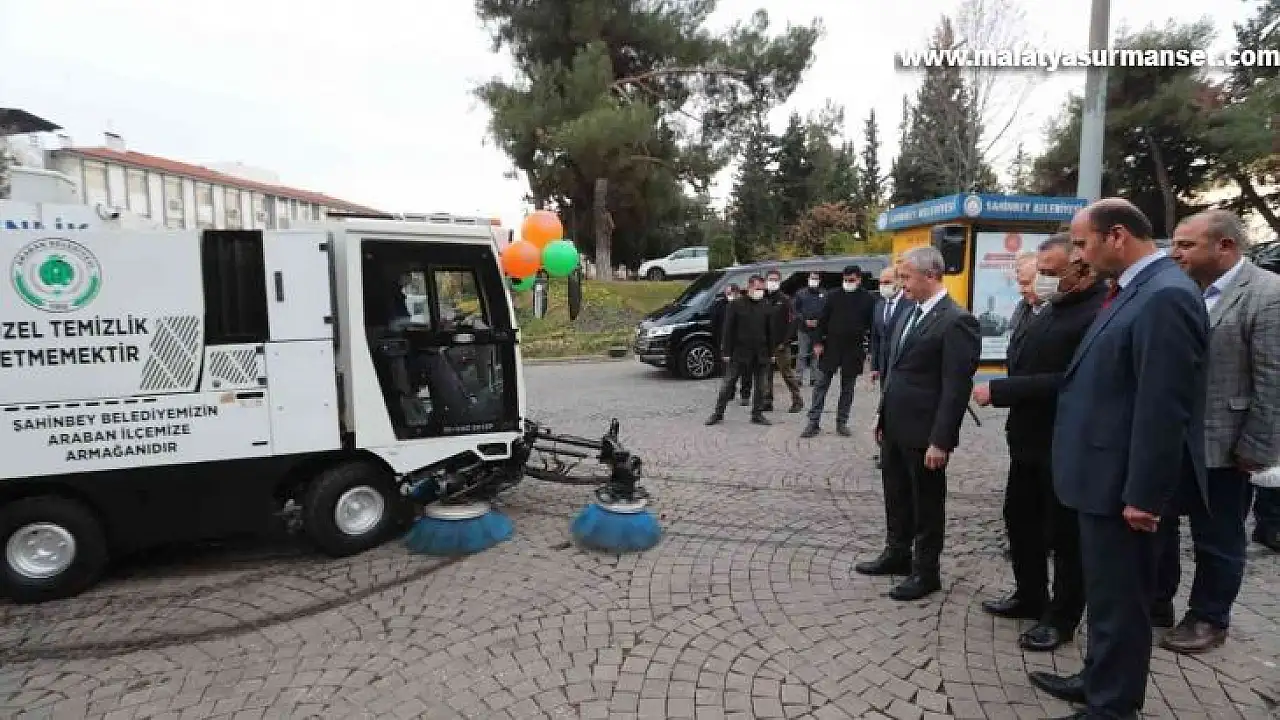 Şahinbey Belediyesi, 7 ilçe belediyesine destek olmaya devam ederek, Vakumlu Yol Süpürge aracı hediye etti.