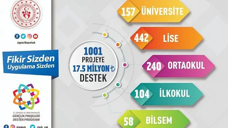 - Gençlik ve Spor Bakanlığından 1001 projeye 17,5 milyon liralık destek