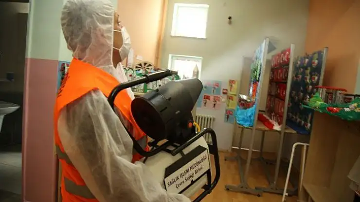 - Gölbaşı Belediyesi korona virüse karşı okulları dezenfekte ediyor