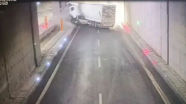 Erkenek Tünelinde ikiye ayrılan tır kazasının görüntüleri çıktı