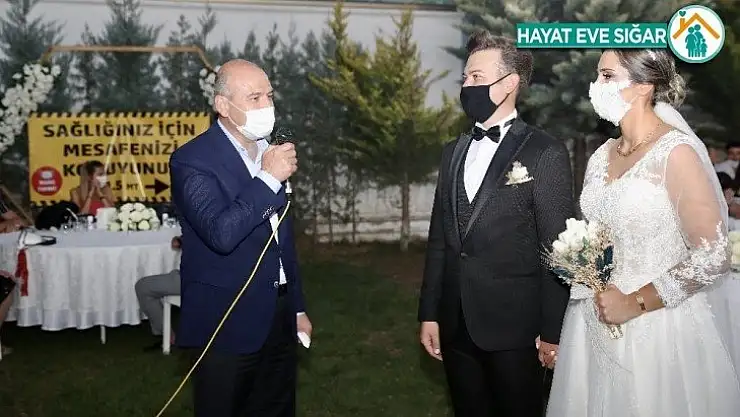 Ayrıca Bakan Soylu, Twitter’dan, düğün sırasında çekilen fotoğraflarla, "İki polis kardeşimizin düğünündeyiz. Mesafe tamam, maske tamam, ateş ölçümü tamam, düğün tamam. Hayırlı olmasını diliyor, teşekkür ve tebrik ediyoruz" mesajını da paylaştı.