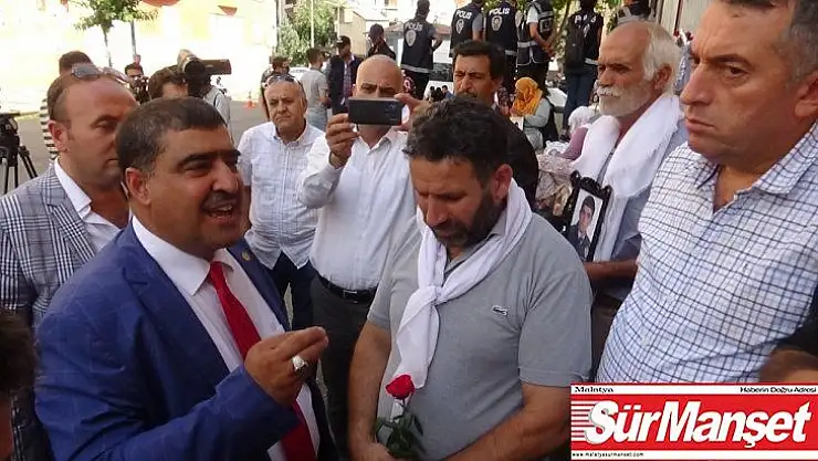HDP il binası önünde oturan aileleri ziyaret eden Dernek Başkanı Can ve yönetim kurulu üyeleri çocukları PKK tarafından kaçırılan annelere gül verdiler.