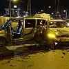 İki aracın kullanılamaz hale geldiği kazayı burunları bile kanamadan atlattılar