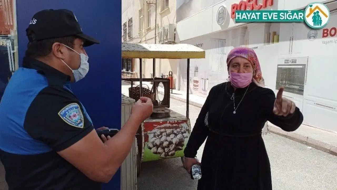 Elinde maskesi ile caddede gezen ve isminin Sevda Zor olduğu öğrenilen kadın, polisleri görünce ara sokağa girerek maskesini takmaya çalıştı. Bunu fark eden polisler, kadının yanına gitti. Polisler herhangibir şey söylemeden konuşmaya başlayan kadın, “Ne oldu ya, Ne var ya, ne var daha yeni çıktım. Olay çıkarmayın. Neden yakalıyorsunuz? Saldıracak mısınız? Dövecek misiniz?” şeklinde konuştu.