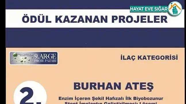 İnönü Üniversitesi Kimya Bölümü Öğretim Üyesi Prof. Dr. Burhan Ateş’in sunduğu ve Kimyager Dr. Ahmet Ulu’nun proje ortağı olduğu "Enzim İçeren Şekil Hafızalı İlk Biyobozunur Stent İmplantın Geliştirilmesi: Lösemi Tedavisinde Yeni Alternatif" başlıklı proje 2’ncilik ödülü kazandı.