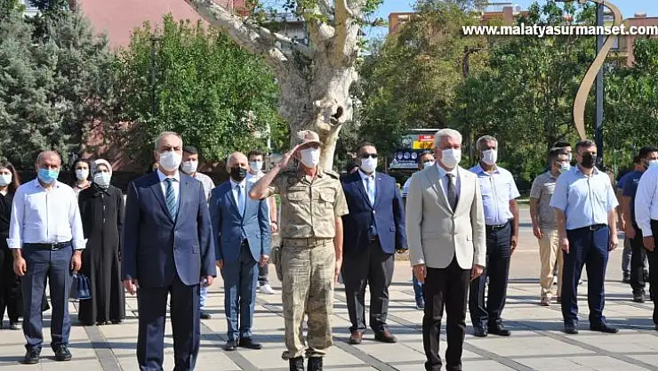 Gaziantep'in İslahiye ilçesinde İlköğretim Haftası dolayısıyla çelenk sunma töreni düzenlendi.