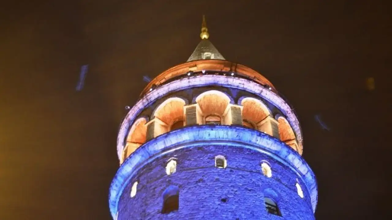 - İstanbul'un simgesi Galata Kulesi mavi ve turuncuya büründü