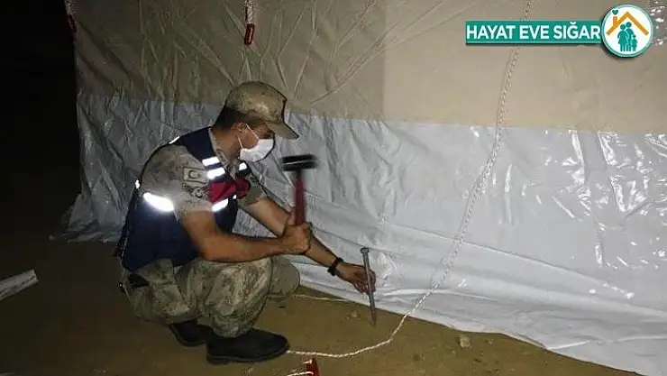 Malatya’nın Pütürge ilçesi Tepehan merkezli 5,2 büyüklüğündeki depremde evleri ağır hasarlı olan vatandaşların kalmaları için AFAD tarafından temin edilen çadırların kurulumunu jandarma yaptı. Taşmış Mahallesi’nde evleri zarar gören ailelere jandarma ekipleri tarafından 9 adet çadır kurulurken, Vali Aydın Baruş, yaptığı açıklamada deprem sonrası 6 evde ağır hasar oluştuğunu söylemişti.