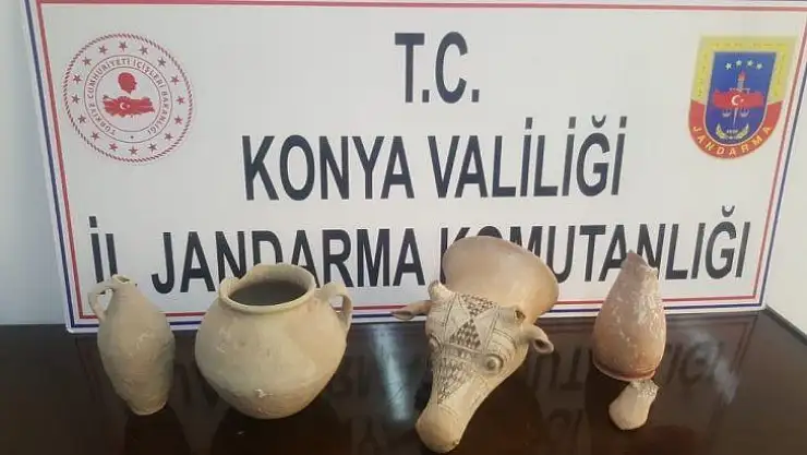 Konya'nın Ereğli ilçesinde, jandarmanın ikna ettiği bir kişi elindeki 2 bin yıllık Roma Dönemi'ne ait tarihi çömlek, testi ve içki kabını görevlilere teslim etti.