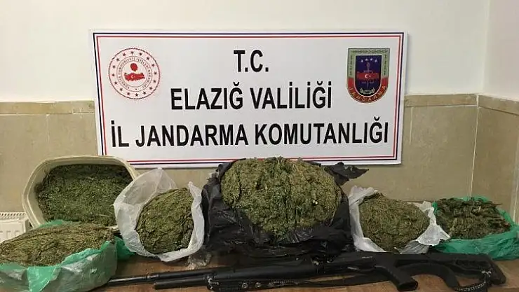 Edinilen bilgiye göre, İl Jandarma Komutanlığı’na bağlı ekipler uyuşturucu ile mücadele kapsamında çalışma yaptı. Ekiplerin istihbarat çalışmasında belirlenen 2 şüphelinin uyuşturucu madde sevkiyatı yapacağı belirlendi.Bunun üzerine harekete geçen ekipler, şüpheliler O.D. ve C.Y’yi takibe aldı.Jandarma ekipleri tarafından bir süre takip edilen 2 şüpheli Elazığ kırsalında düzenlenen operasyonla otomobil içinde yakalandı.Araçta yapılan aramada 12 kilo 870 gram esrar ile 1 adet pompalı tüfek ele geçirildi.
