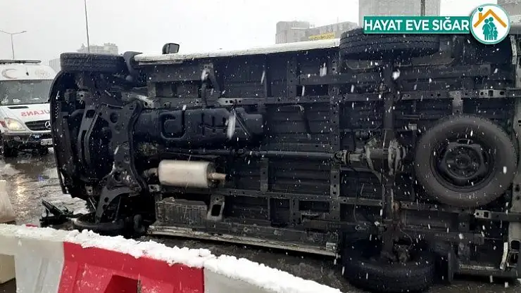 Bostancı'da yoğun kar yağışı sonrası direksiyon hakimiyetini kaybeden sürücüye ait hafif ticari araç bariyerlere çarptıktan sonra yan yattı. Araç içerisinde bulunan iki kişi kazayı ufak sıyrıklarla atlattı.