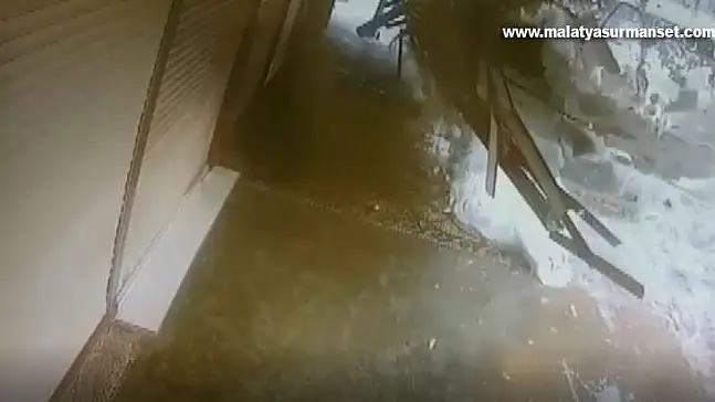 Gaziantep’te bir dükkanın tentesi, yoğun kara dayanamayarak çöktü. O esnada dükkanın önünden geçen iki kişinin tentenin altında kalmaktan saniyelerle kurtulduğu anlar güvenlik kamerasına yansıdı.