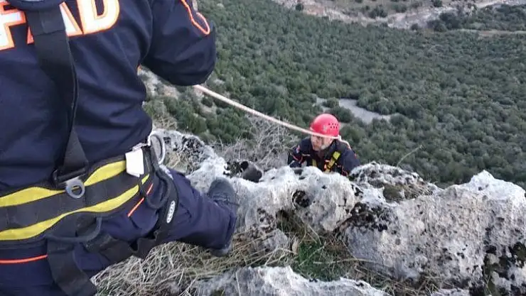 Adıyaman'da kayalıklarda mahsur kalan keçi, İl Afet ve Acil Durum Müdürlüğü (AFAD) ekipleri tarafından kurtarıldı.