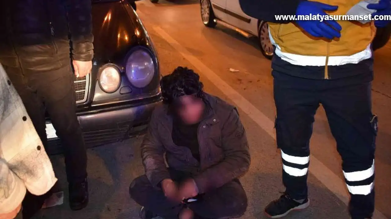 Malatya'da elektrikli motosiklet bir yayaya çarptı. Yaya yaralanırken, burnu kırılan motosiklet sürücüsü de yolda bağdaş kurarak ambulansın gelmesini bekledi.