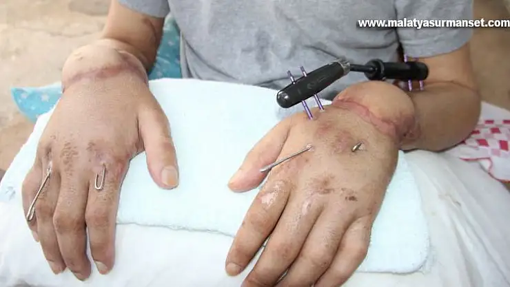 Adıyaman’da 5 ay önce elektrik akımına kapılan inşaat işçisi kesilmesine müsaade etmediği ellerini tendon nakli ile kullanmak istiyor.