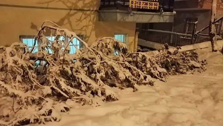 Ankara'nın Kızılcahamam ilçesinde yoğun kar yağışı nedeniyle ağaçlar kırıldı.