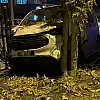 Kontrolden çıkan minibüs, refüjdeki ağaca çarparak durabildi