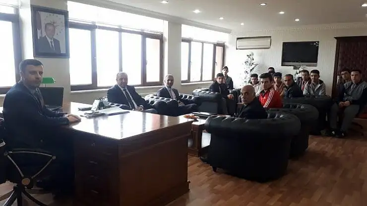 Güreş Antrenörü öğretmen Onur Altunbey, Halk Eğitim Merkezi Müdürü Aziz Ayaz ve İlçe Milli Eğitim Müdür Vekili Mustafa Akkaya, Kale Kaymakam Vekili Nurullah Kaya’yı makamında ziyarette, öğrencilerin başarısı konuşuldu.