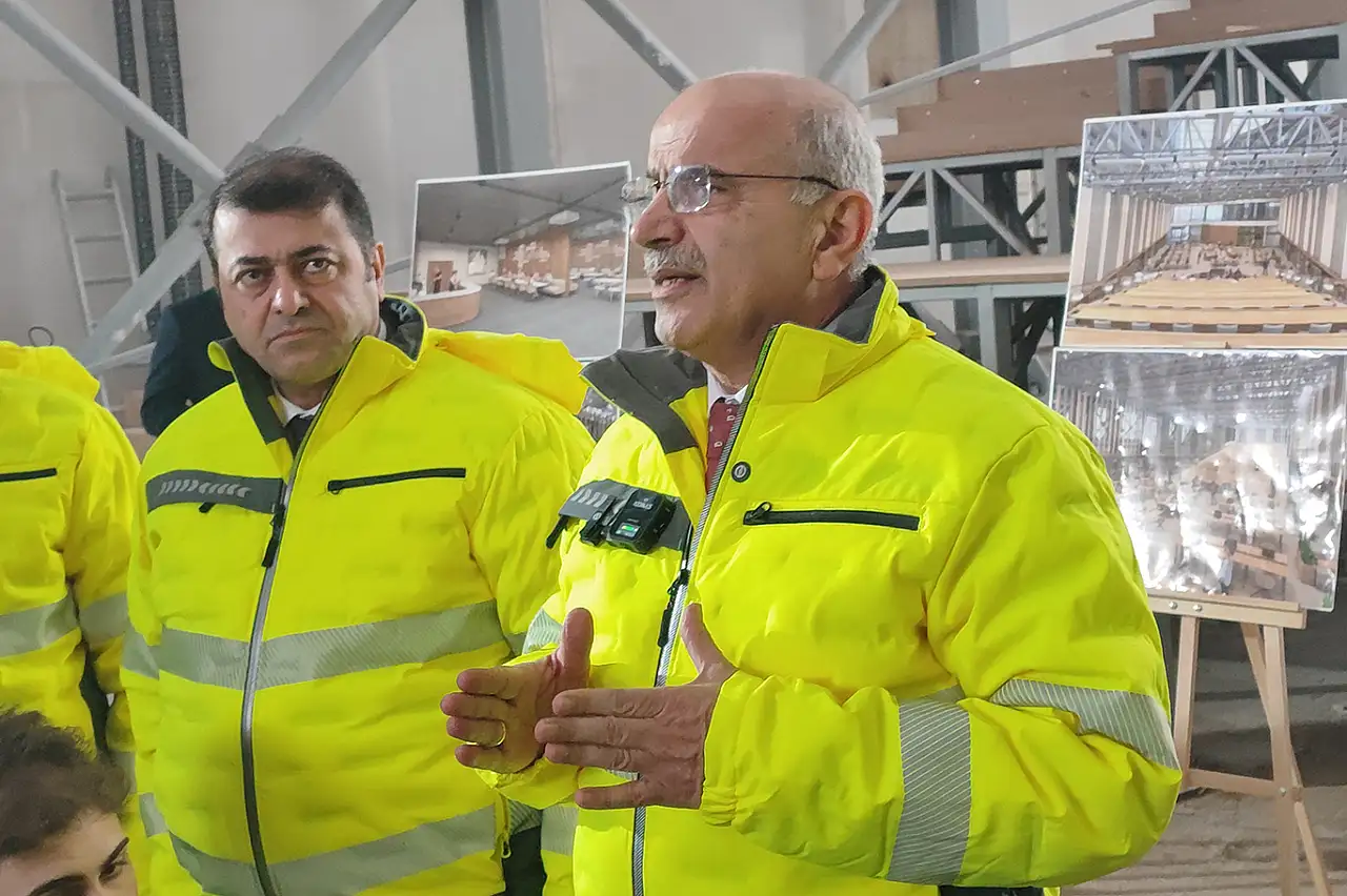 Projenin fiziki yapısına ilişkin bilgi veren Başkan Er, kütüphanenin toplam inşaat alanının oldukça geniş olduğunu vurgulayarak, "Burası gördüğünüz gibi toplamda 6 bin 400 metrekare inşaat alanına sahip. Bunun 3 bin 200 metrekaresi bodrum katta yer alıyor ve kütüphanenin lojistik destekleri için hazırlanmış bir bölüm. Burada su depoları, yangın müdahale depoları, klima santralleri, ısıtma sistemleri ve müştemilatlar bulunuyor." ifadelerini kullandı.
