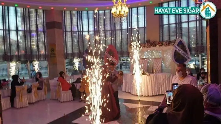 Dünyayı etkisi altına alan korona virüs (Covid-19) nedeniyle ertelenen düğün törenleri, yaklaşık 4 ay aradan sonra yeniden yapılmaya başlandı. Maske ve sosyal mesafe kurallarına uyulan düğün törenine katılan misafirler salona ateşleri ölçülerek alınırken, düğünde ise tedbirler kapsamında davetlilerin oynamasına izin verilmedi. Gelin ve damadın alkışlarla salona gelmesinin ardından başlayan düğünde, takılar ise zarflara konularak sandığa bırakıldı.
