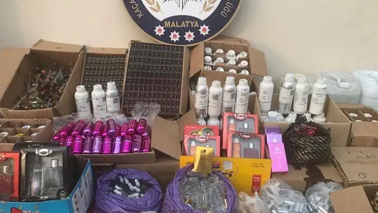 Edinilen bilgilere göre, kent merkezinde bulunan bir adreste sahte parfüm üretimi yapıldığı ihbarını alan Malatya Kaçakçılık ve Organize Suçlarla Mücadele Şube Müdürlüğü ekipleri, iş yerine operasyon düzenledi. Operasyonda imalathane olarak kullanılan depoda 293 şişe satışa hazır sahte parfüm, 3 bin 780 boş parfüm şişesi, 156 litre parfüm üretiminde kullanılan kimyasal sıvı ele geçirildi. Operasyonda Suriye uyruklu 1 kişi gözaltına alındı.
