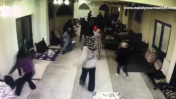 Malatya'da dün yaşanan 5.6'lık depreme camide yakalanan vatandaşların panik anları, güvenlik kamerasına saniye saniye yansıdı.