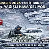 Meteoroloji 13. Bölge Müdürlüğü’nden yapılan uyarıda, "Yapılan son meteorolojik değerlendirmelere göre; 26 Aralık 2025 Cuma gününden itibaren Bölgemiz genelinin soğuk ve yağışlı havanın etkisi altına girmesi beklenmektedir. Yağışların; Cuma gününden itibaren yağmur şeklinde başlayıp zamanla karlakarışık yağmur ve kar şeklide yağacağı tahmin edilmektedir. Halen mevsim normalleri civarında seyreden hava sıcaklıklarının, beklenen yağışlarla beraber bölge genelinde hissedilir derecede (3 ila 7 derece) azalacağı tahmin edilmektedir. Soğuk havanın Bölgemiz genelinde önümüzdeki hafta boyunca da etkisini sürdürmesi beklenmektedir. Bu süreçte; özellikle gece ve sabah saatlerinde sıcaklıkların düşmesine bağlı olarak buzlanma ve don olaylarının görülebileceği, buna bağlı olarak kara, hava ve deniz ulaşımında aksamalar yaşanabileceği değerlendirilmektedir. Ayrıca, tarımsal faaliyetlerin devam ettiği bölgelerde soğuk hava ve don olaylarının zirai don riskini artıracağı, ürün kayıplarına neden olabileceği öngörülmektedir. Çevre, Şehircilik ve İklim Değişikliği Bakanlığı Meteoroloji Genel Müdürlüğü tarafından hazırlanıp yayınlanacak olan tahmin ve meteorolojik erken uyarıların takip edilmesi önem arz etmektedir" denildi.