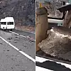 Artvin'de yamaçtan kopan kaya parçaları seyir halindeki bir yolcu minibüsüne isabet etti. Olayda 3 kişi yaralandı.