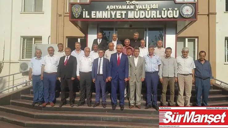 Adıyaman Köy ve Mahalle Muhtarları Mesleki Dayanışma Derneği Başkanı Abdulkadir Geylani Taş ve dernek üyesi muhtarlar, Adıyaman İl Emniyet Müdürü İbrahim Ergüder'e hayırlı olsun ziyaretinde bulundu.