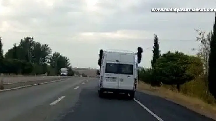 Olay, Adıyaman - Kahta karayolu üzerinde meydana geldi. Taşımalı eğitim kapsamında köyden aldığı öğrencileri taşıma merkezindeki okula taşıyan öğrenci servisinde otaya çıkan görüntüler, “Bu kadar da olmaz” dedirtti. Minibüsün her iki yanından dışarı sarkan iki kız öğrencinin görüntüsü yürekleri ağza getirdi. Camdan dışarı çıkan ve sadece ayakları minibüsün içerisinde olan öğrenciler, ellerini açarak tehlikeli şekilde yolculuk etti. Diğer sürücüler yaşanan bu anları cep telefonuyla kaydetti.