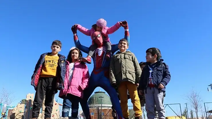 Antalya'da kurgusal kahraman Örümcek Adam'ın kostümü ile dikkatleri çeken 27 yaşındaki Burak Soylu, Elazığ'a gelerek depremzede çocukların televizyonda gördüğü kahramanı canlandırıp, gönüllerince eğlenmesini sağladı.