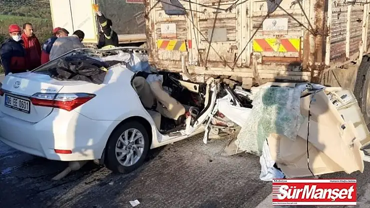 Alınan bilgiye göre, Şanlıurfa’nın Ceylanpınar ilçesinde Tarım İşletmeleri Genel Müdürlüğü’nde (TİĞEM) çalışan Muhammet Talha Çoban’ın (29) kullandığı 06 EE 0601 otomobil, E 90 Otoyolu Düziçi turnikeleri, Ellek Beldesi mevkisinde sürücüsü öğrenilemeyen 41 E 5523 plakalı kamyona arkadan çarptı. Kazada hurdaya dönen otomobilin sürücü ile yanında bulunan Rahime Aslı Atça (19) ve Beste Sayıner’de (18) kaldırıldıkları Düziçi Devlet Hastanesinde hayatını kaybetti. Yaralılar Halil Barış Tunçbilek (18) ve Çağrı Çakmak’ın (19) ise tedavisi sürüyor.