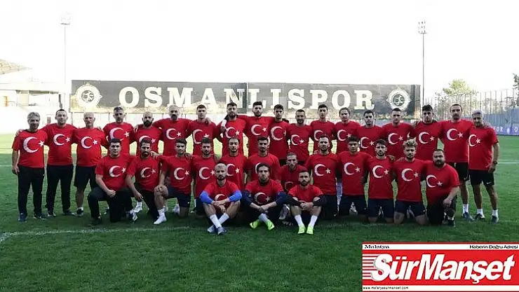 Osmanlısporlu teknik heyet, futbolcular ve personel, önceki gün başlayan 'Barış Pınarı Hareketi'nde görevli Mehmetçiğe destek amacıyla antrenmana Türk bayrağı tişörtleriyle çıktı.