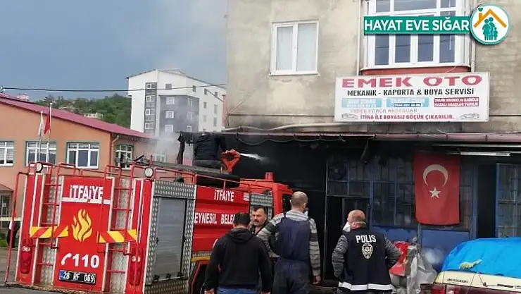 Giresun'un Eynesil ilçesinde bir oto tamir atölyesinde çıkan yangın korkuttu. Can kaybı ve yaralanmanın olmadığı yangında bir otomobil kullanılamaz hale geldi.