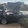 Gaziantep'te kontrolden çıkan otomobil bariyerlere çarptıktan sonra taklalar artarak refüje uçtu.