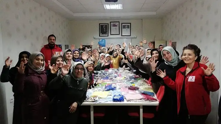 Çankaya Müftülüğü Kültür Merkezi'ndeki kurslara katılan yaklaşık 70 görme ve işitme engelli öğrenci, İdlib'de yaşanan drama kayıtsız kalmayarak hazırladıkları el işi göz nuru ürünleri, oyuncakları ve topladıkları bir miktar parayı Türk Kızılayı'na teslim etti.