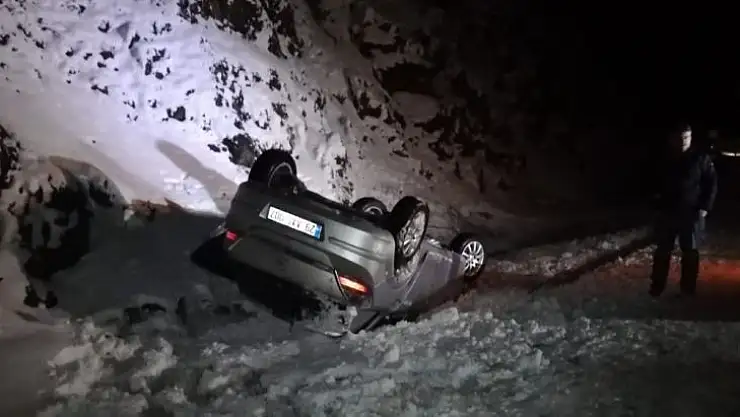 Pekün Dağı geçidinde otomobil takla attı: 3 yaralı