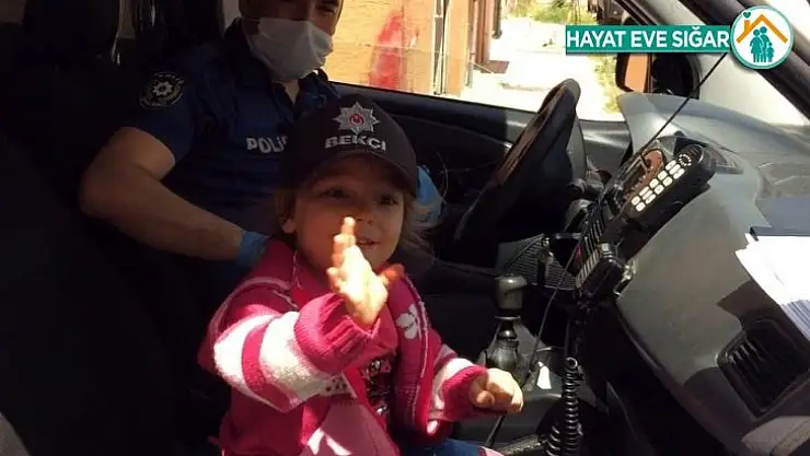 Korona virüs (Covid-19) tedbirleri kapsamında sokağa çıkma kısıtlaması devam ederken, polis ve bekçiler de görevlerine aralıksız devam ediyor. Mahalle ve sokaklarda devriye faaliyetlerini sürdüren ekipler, sokağa çıkma kısıtlamasını ihlal eden vatandaşları da uyararak evlerine gönderiyor. Eskişehir’de Tepebaşı İlçe Emniyet Müdürlüğüne bağlı polis ekipleri, Esentepe Mahallesi’ndeki devriye esnasında sokakta oyun oynayan 4 yaşındaki kız çocuğunu görerek yanına gitti. Bu esnada polis arabasını gören minik kız korkarak babasının yanına gitti. Araçtan inen ekipler, sevmek için kız çocuğunu yanına çağırsa da babasının elini bırakmayan minik kız ağlamaya başladı. Baba ‘Polislerden korkulmaz gel’ dese de ikna olmayan 4 yaşındaki kız, uzaklaşmaya başladı. Baba, korkusunu yenmek için kızının ağabeyini polisin yanına gönderdi. Ağabeyine polis şapkasını takan ekipleri gören minik kızın gözyaşları dinip, gülümseyerek yanlarına koştu. Bekçi şapkası takılan küçük kızı kadın polis memuru kucağına alarak polis arabasına bindirdi. Minik kız, polis ağabeyi ve ablası eşliğinde araç megafonuyla mahalle sakinlerine iki kez ‘evde kalın’ diye seslendi. Ardından ekipler, çocuklara ‘Artık evlerinize gidin. Bundan sonra korkmak yok’ diyerek, araçlarına binip görevlerine devam etti. Yaşadığı mutluluk adeta gözlerinden okunan minik kız ise, polis ve bekçileri arkalarından el sallayarak uğurladı.