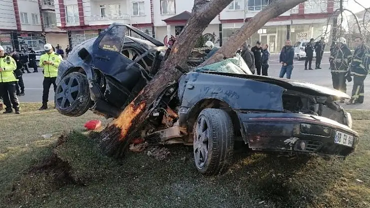 Aksaray'da kontrolden çıkan otomobil, refüje çıkarak ağacı yerinden söktü kazada 2 kişi hayatını kaybetti, 1 kişi de ağır yaralandı.